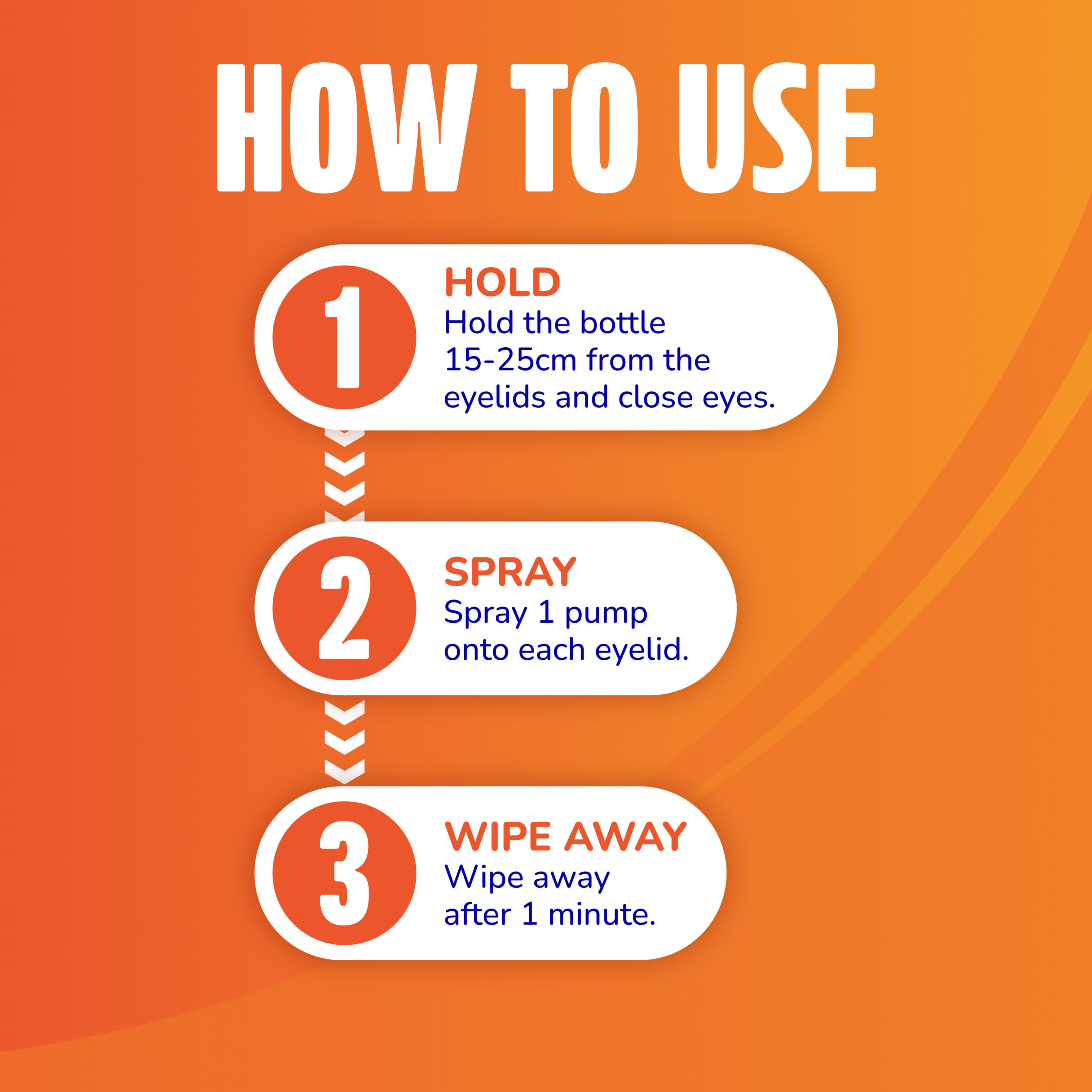 Using the product is easy. Simply hold the bottle 15-25cm away from the eyelids and spray one pump onto closed eyes in the morning and at night. Wipe away after one minute.
